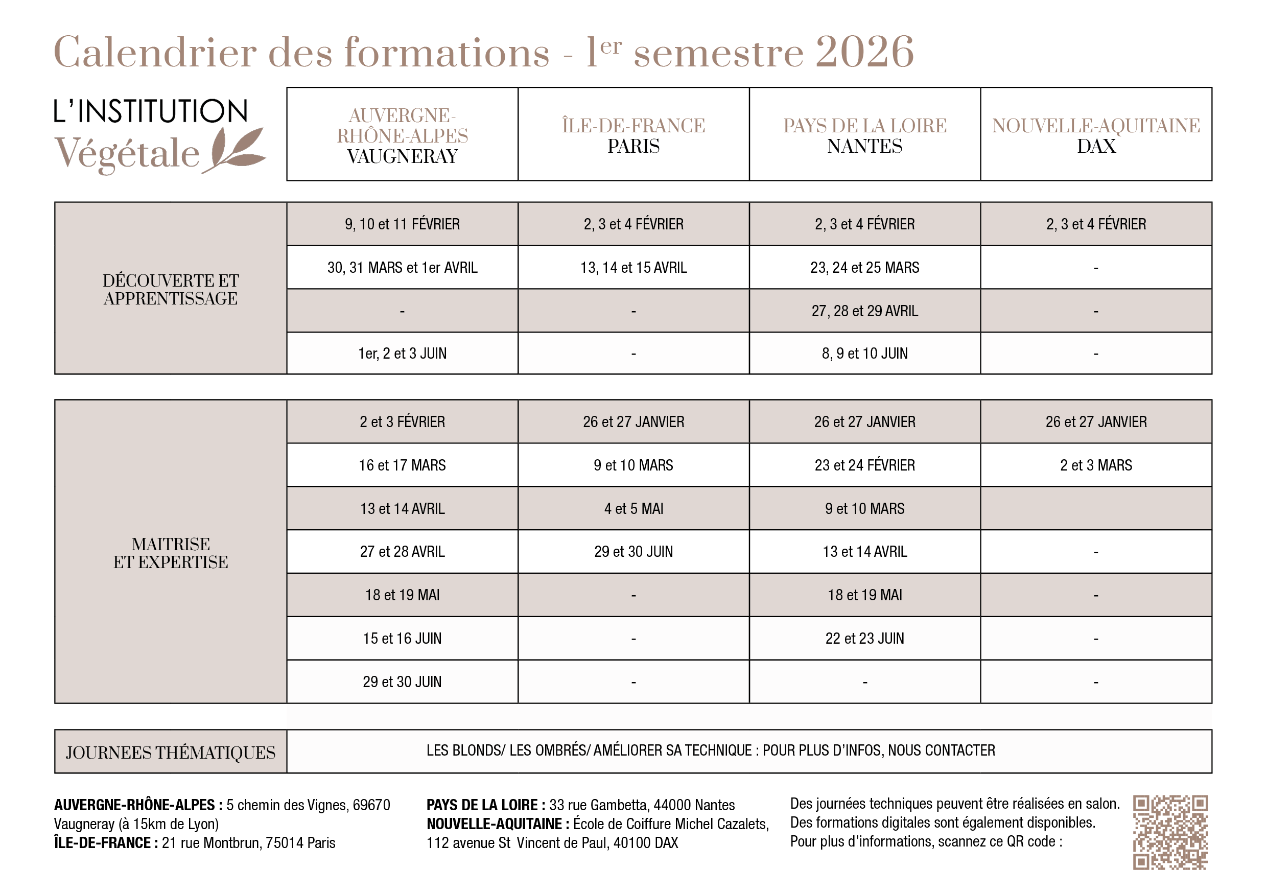 L’Institution Végétale dispose de 4 centres de formation permanents :